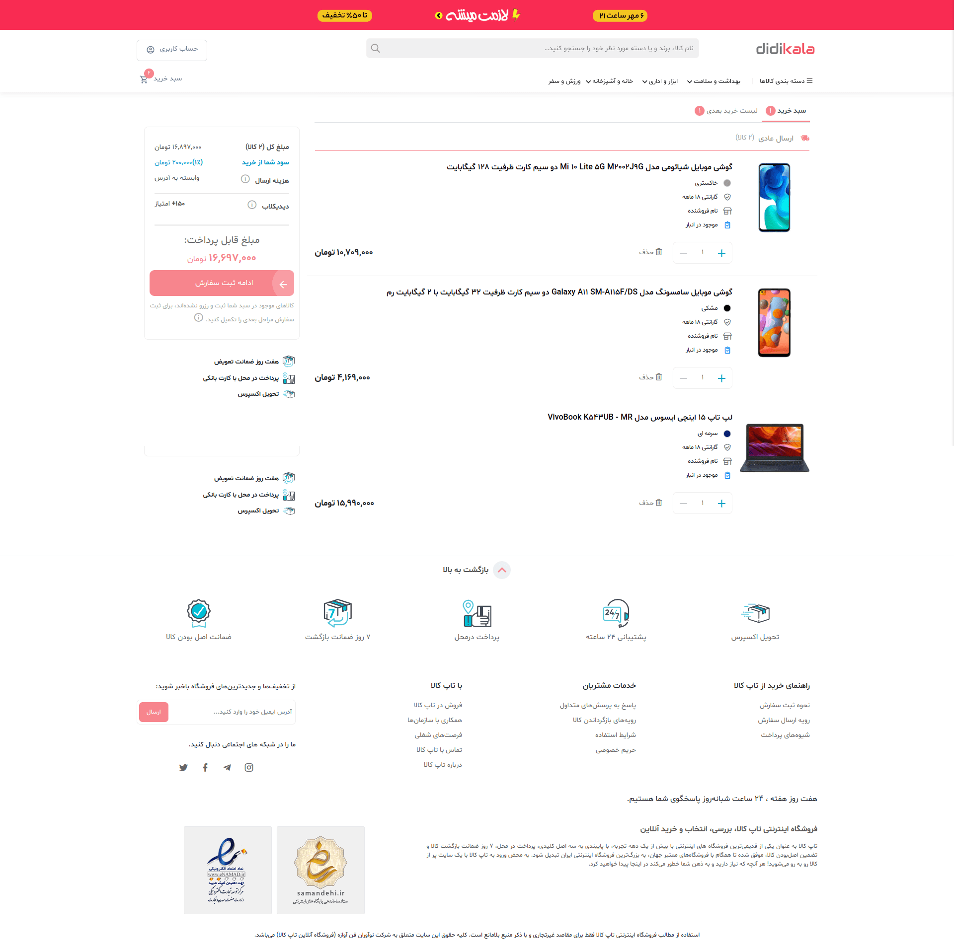 در نسخه دمو فقط به صفحه اصلی، صفحه محصول، سبد خرید، انتخاب آدرس، لیست محصولات و پروفایل کاربری(فقط بخش پروفایل)، دسترسی دارید و بقیه صفحات فقط تصاویر آن قابل مشاهده است.