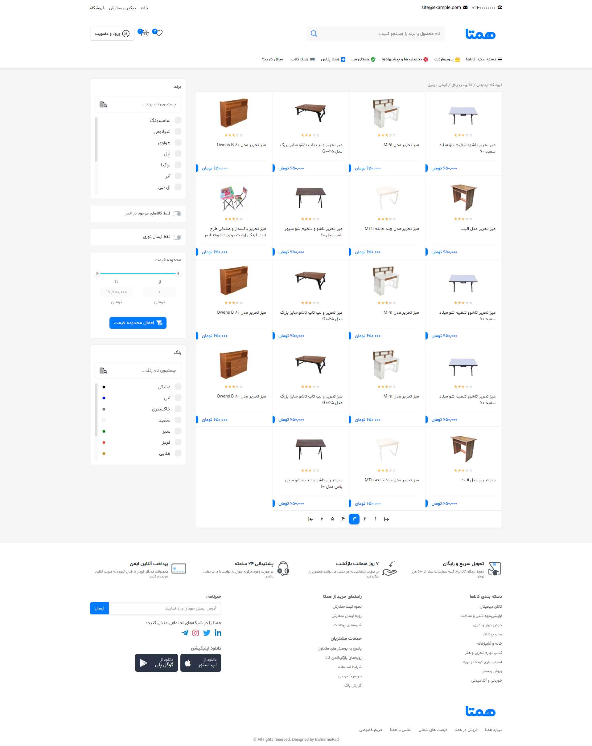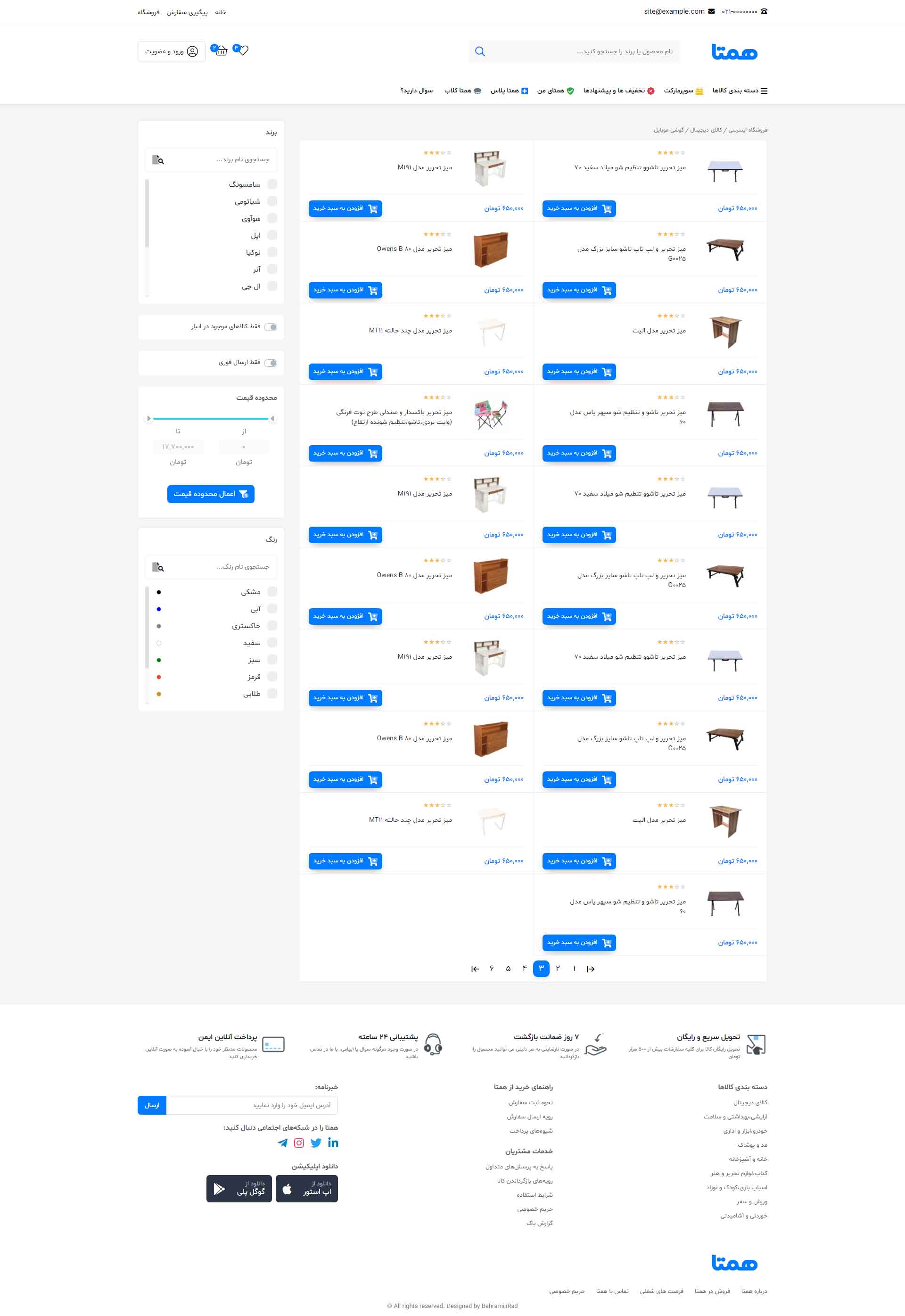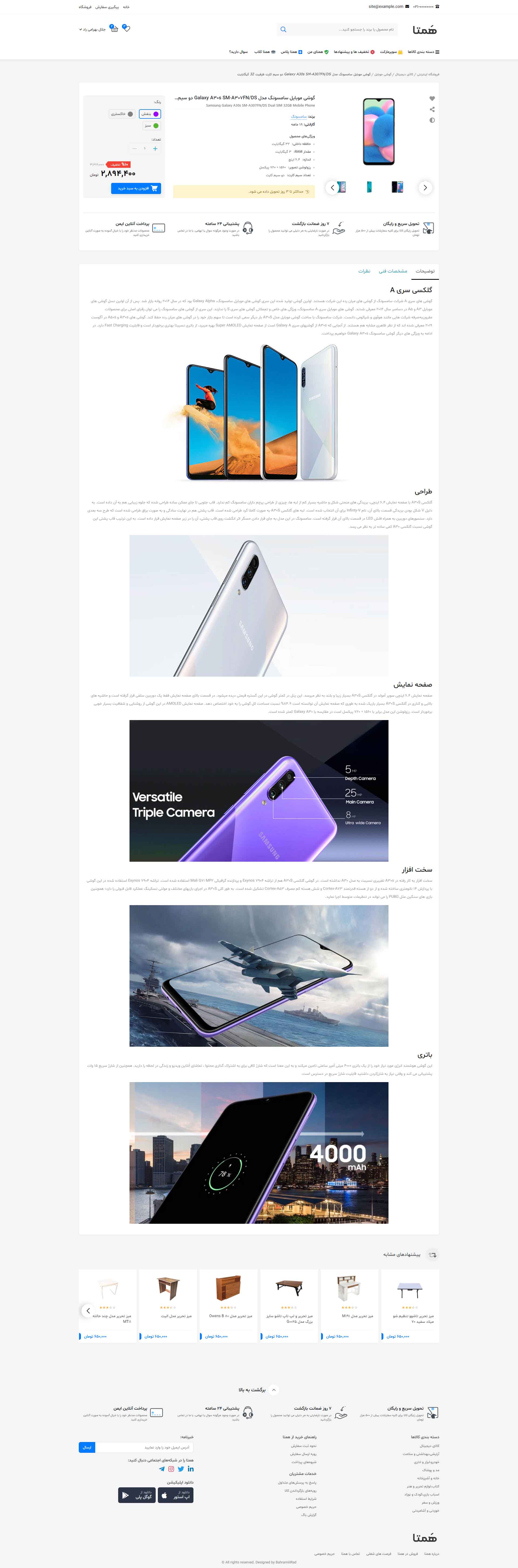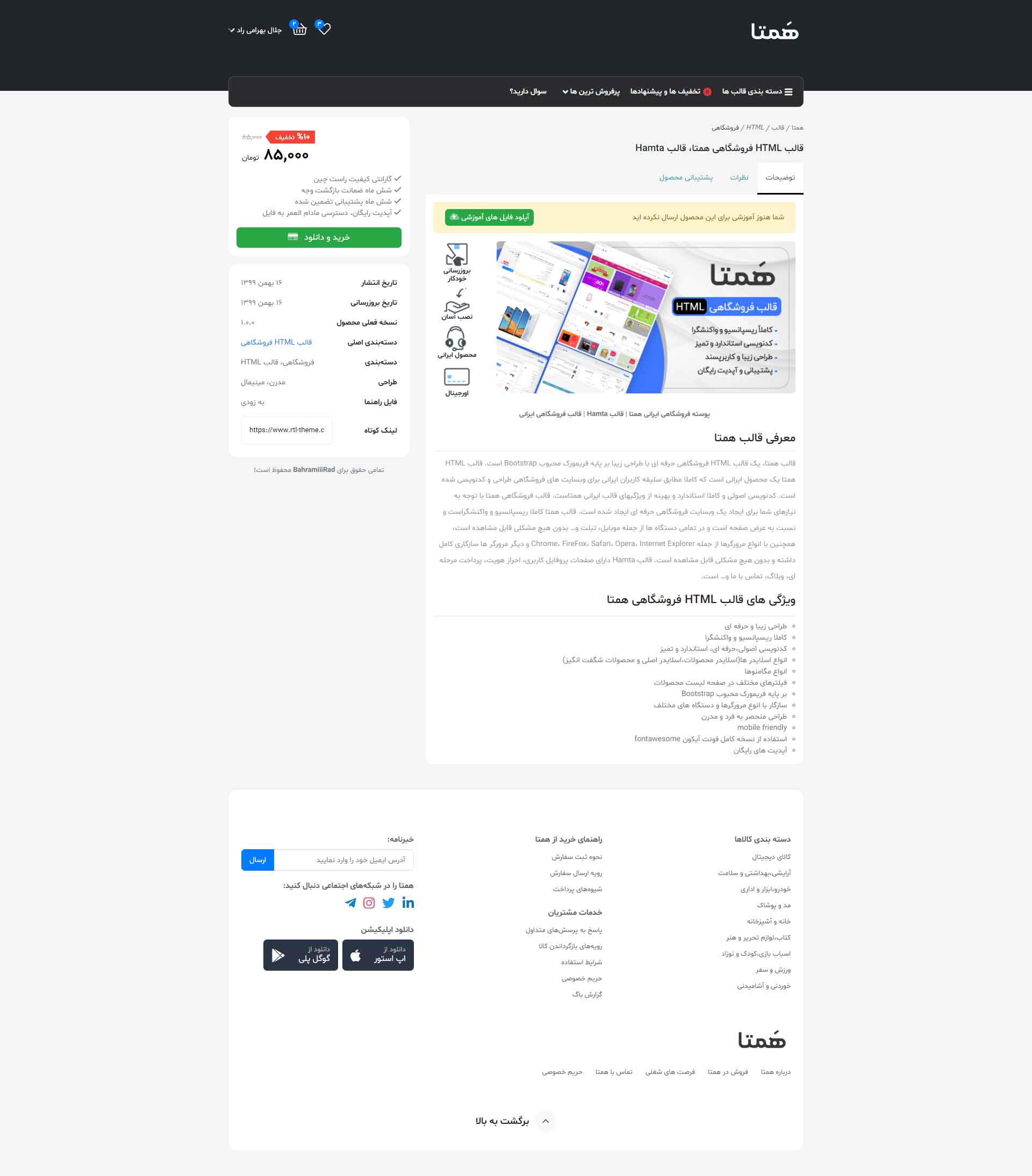 در نسخه دمو فقط به صفحه اصلی، صفحه محصول، لیست محصولات، پروفایل کاربری(فقط بخش پروفایل)، و مقالات دسترسی دارید و بقیه صفحات فقط تصاویر آن قابل مشاهده است.
