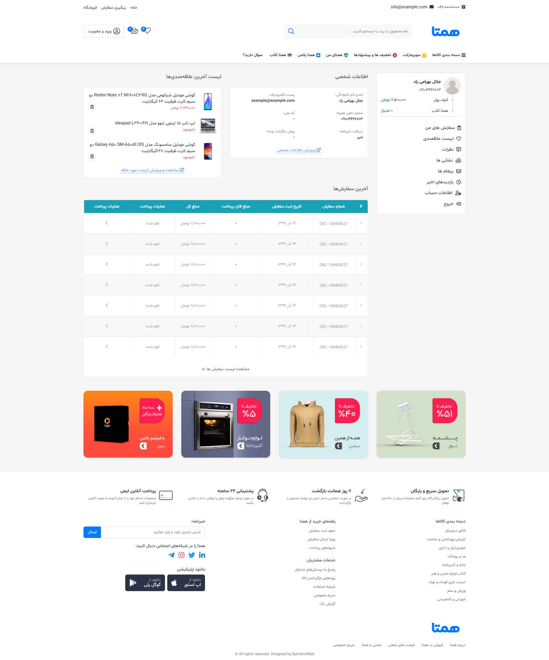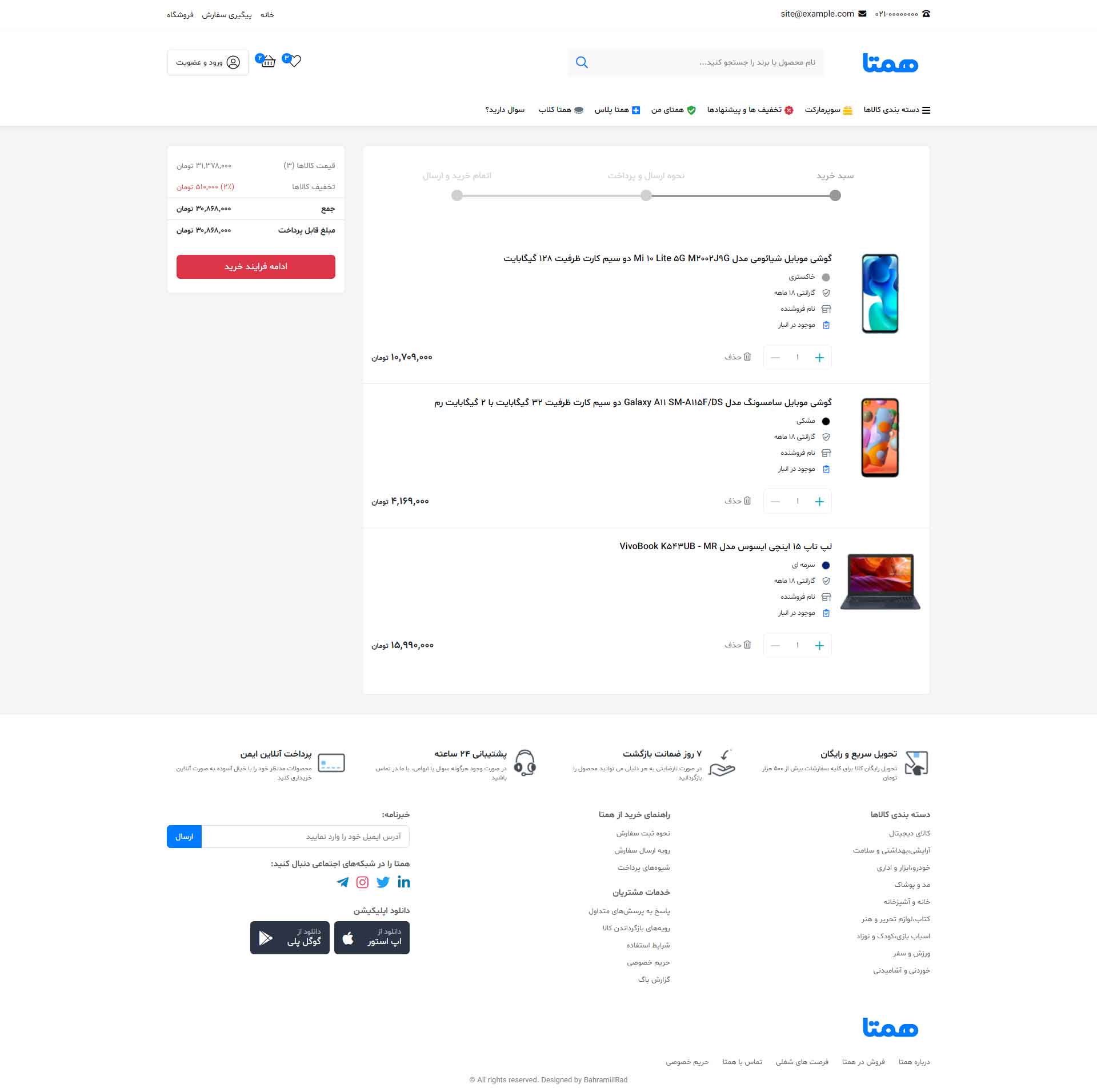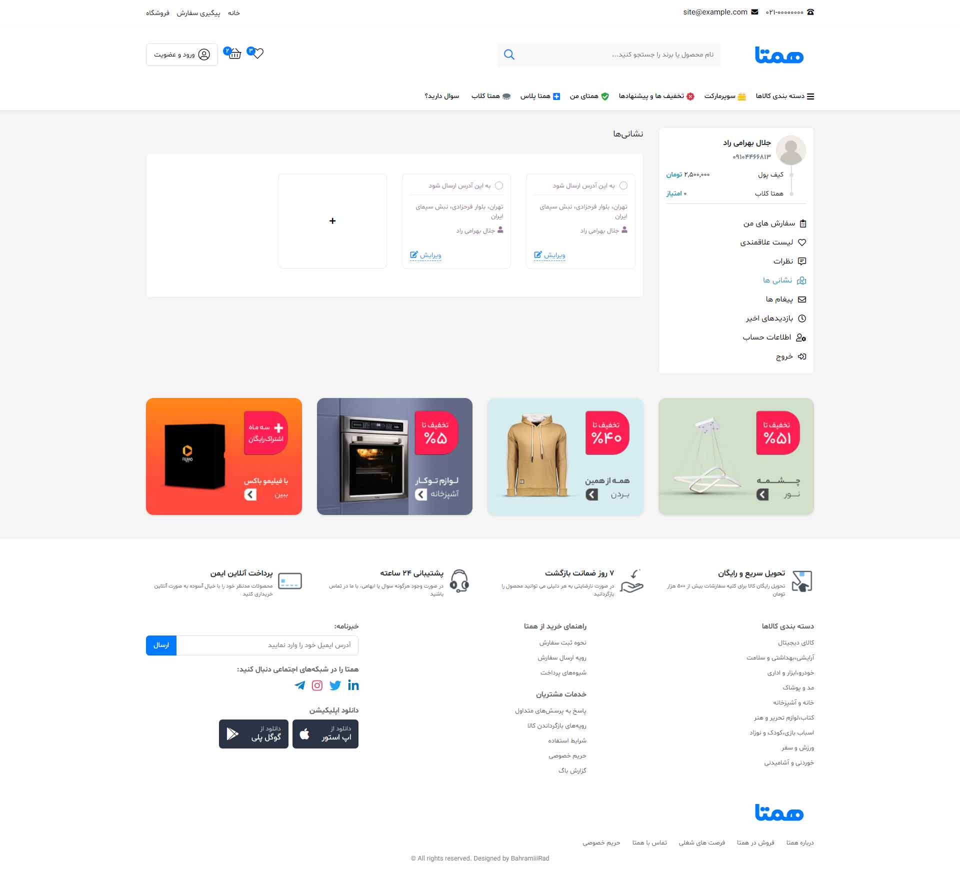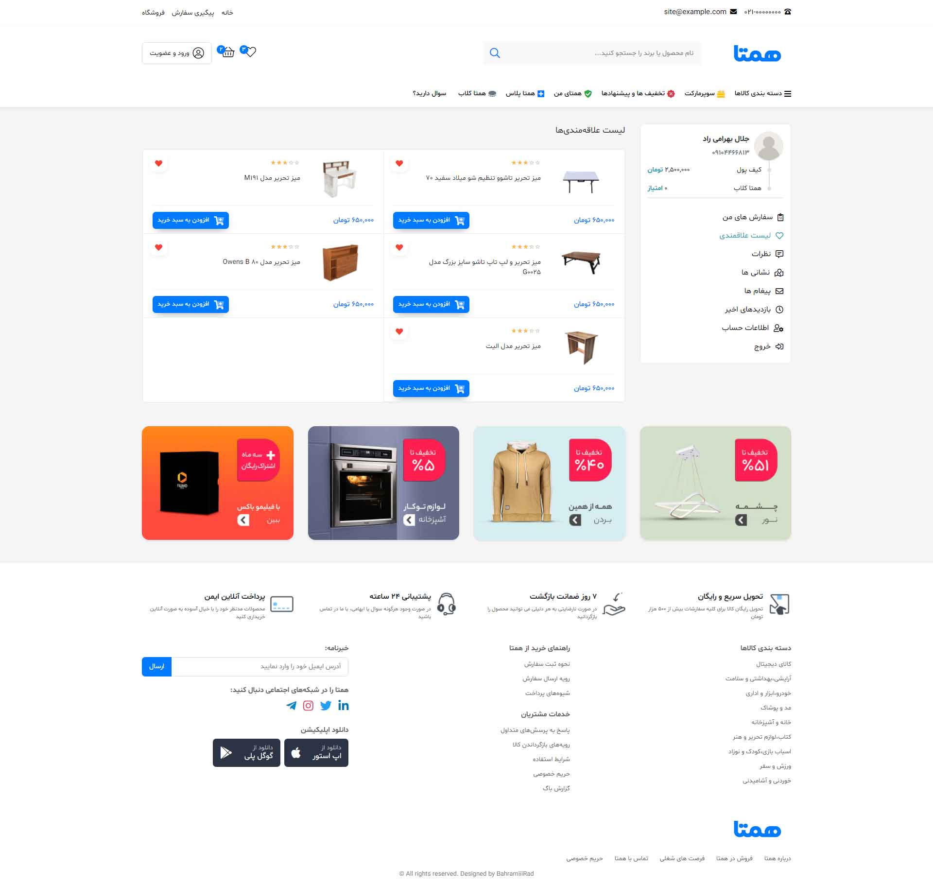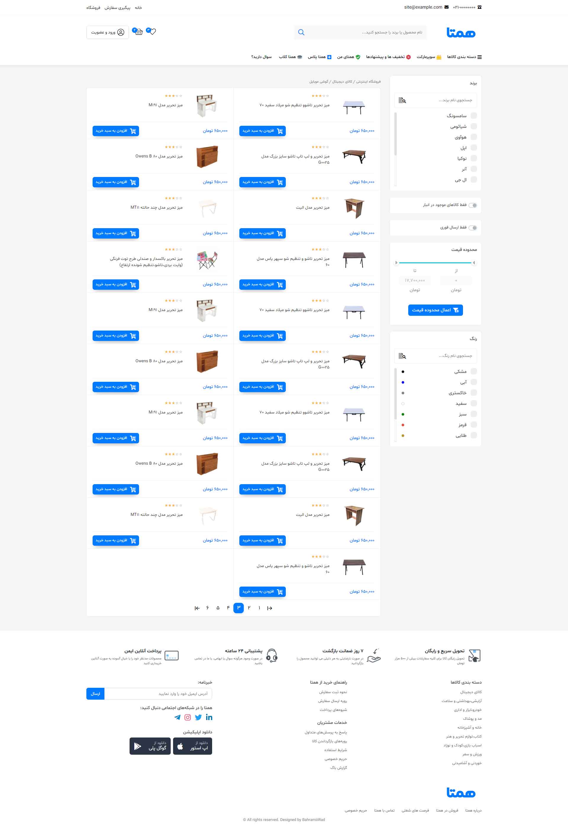 در نسخه دمو فقط به صفحه اصلی، صفحه محصول، لیست محصولات، پروفایل کاربری(فقط بخش پروفایل)، و مقالات دسترسی دارید و بقیه صفحات فقط تصاویر آن قابل مشاهده است.