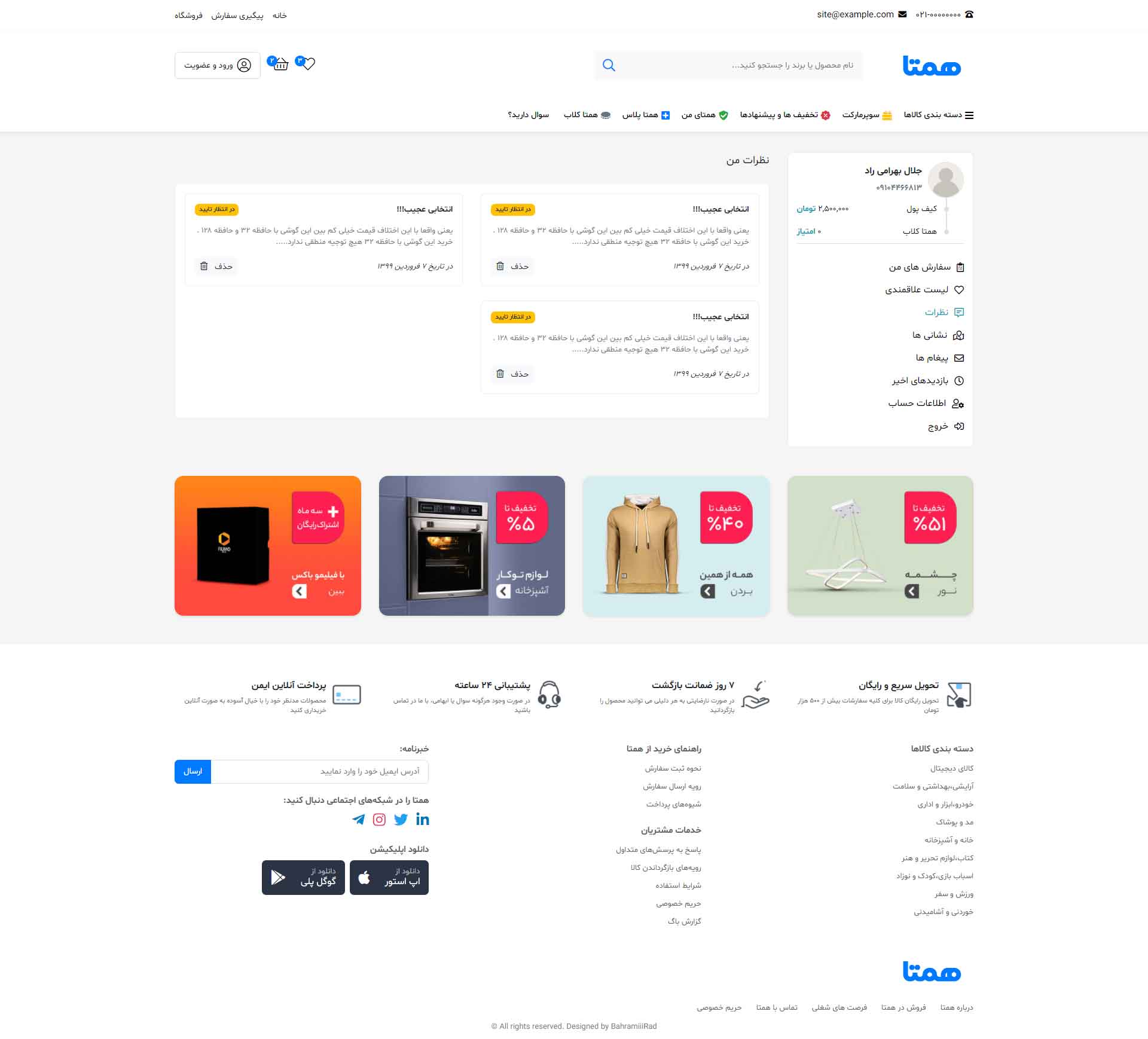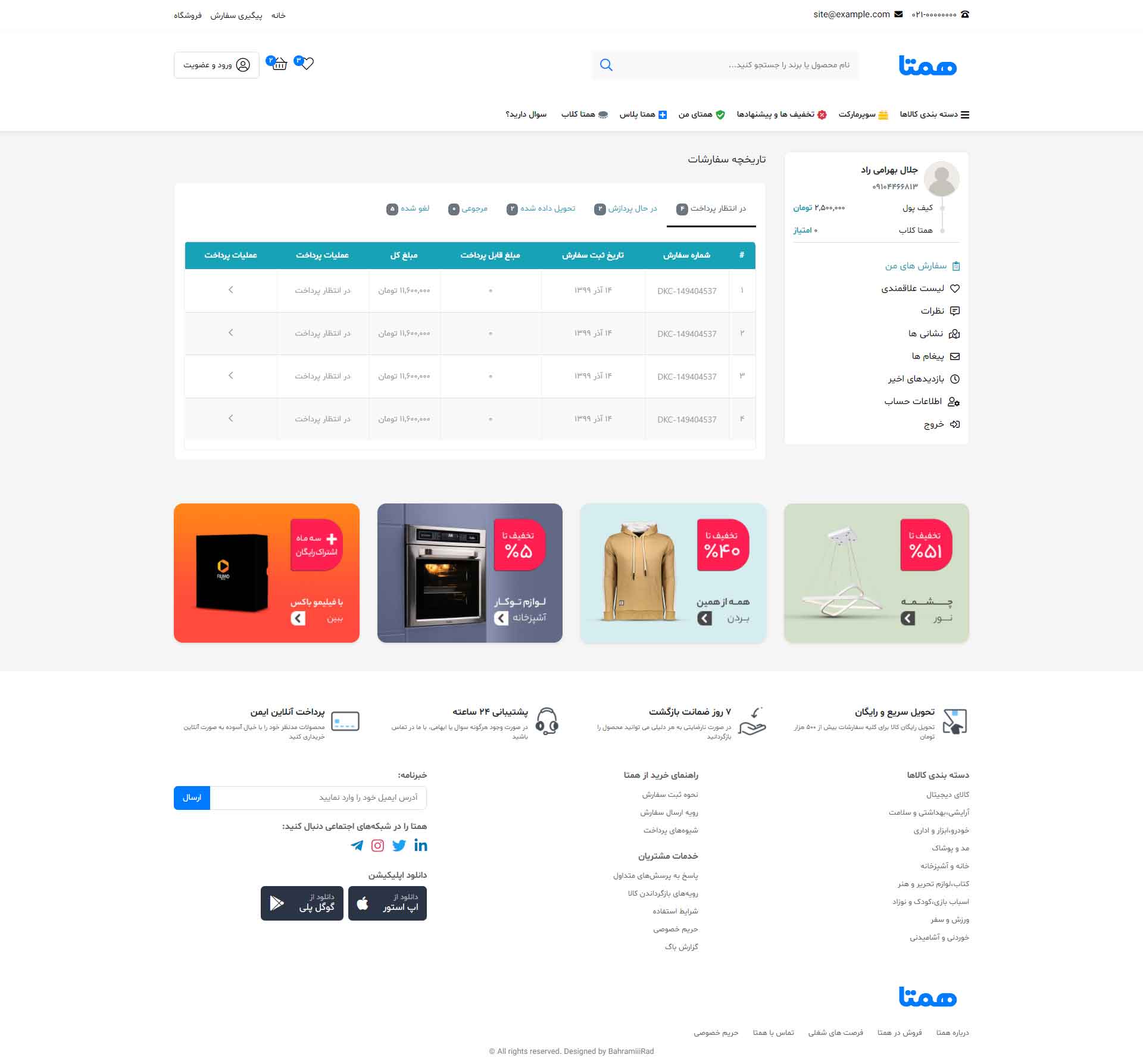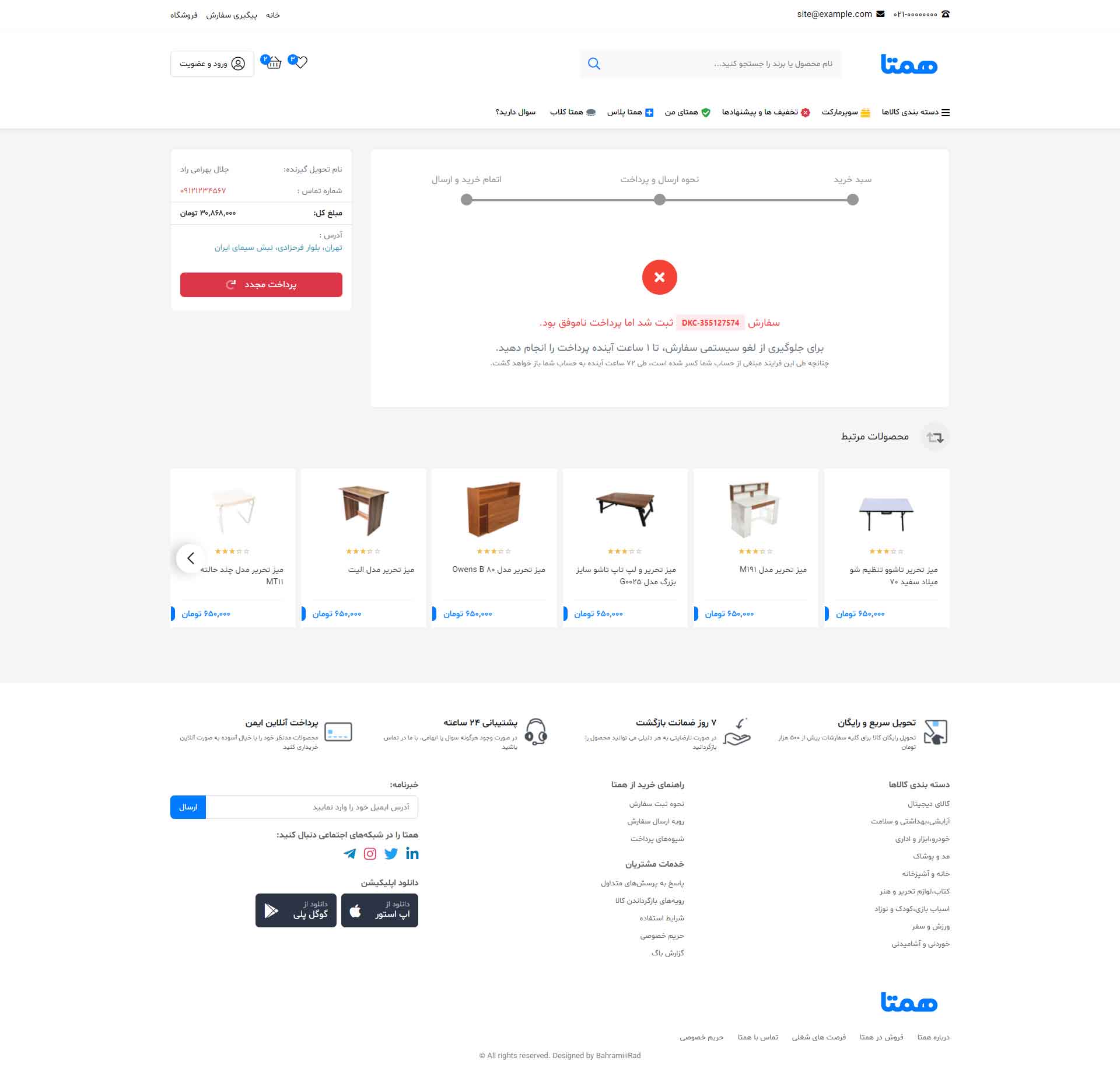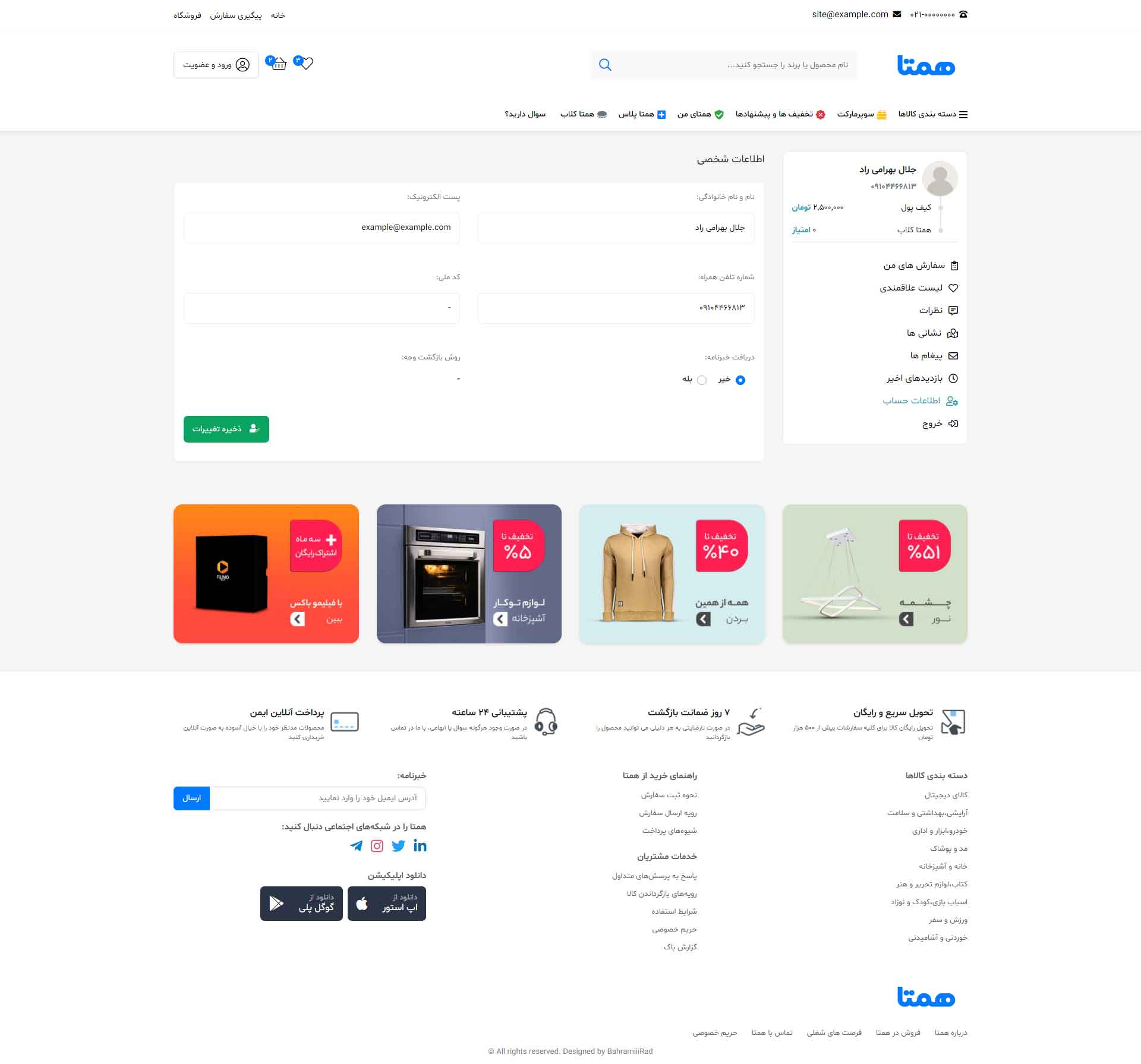 در نسخه دمو فقط به صفحه اصلی، صفحه محصول، لیست محصولات، پروفایل کاربری(فقط بخش پروفایل)، و مقالات دسترسی دارید و بقیه صفحات فقط تصاویر آن قابل مشاهده است.