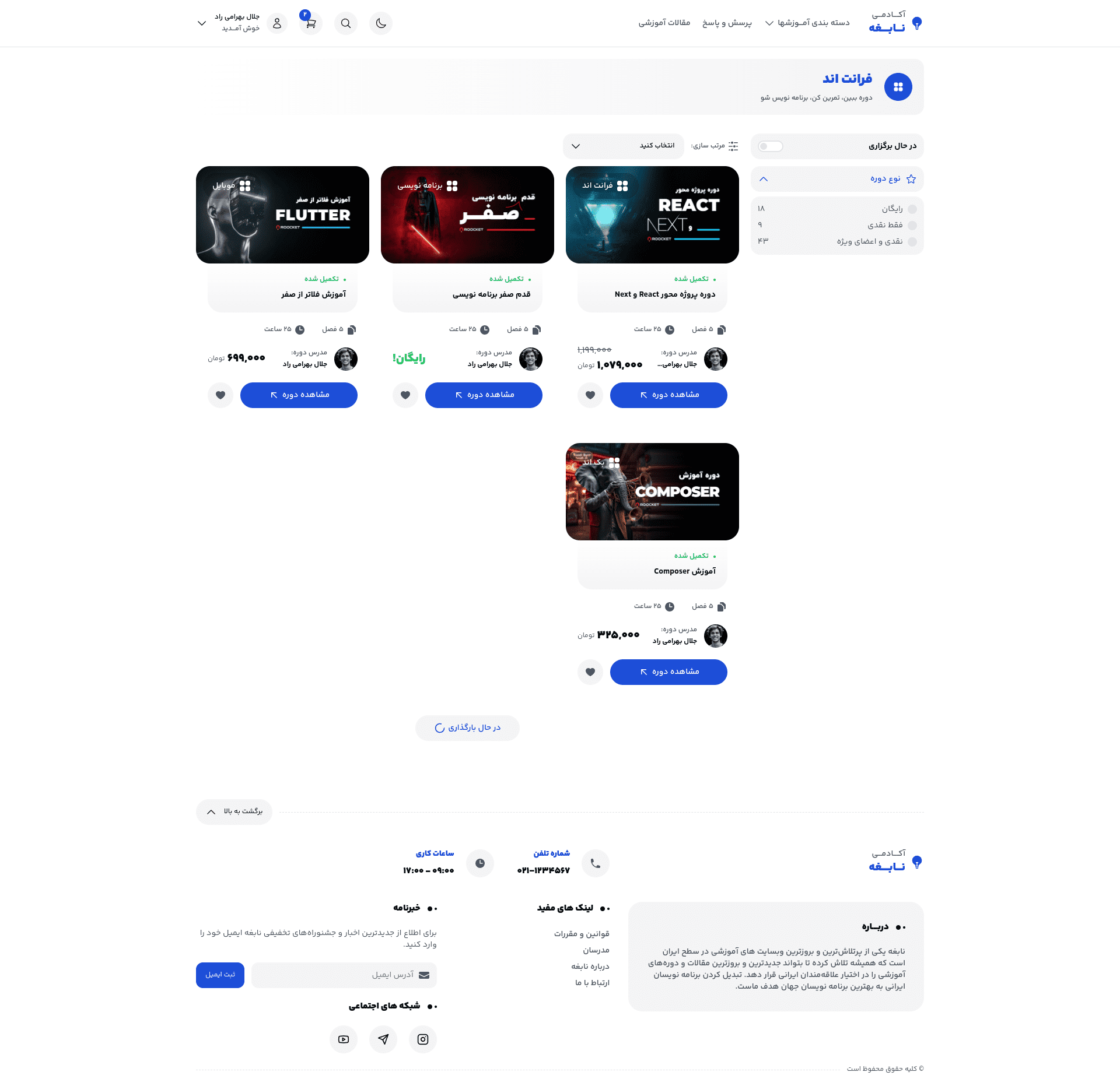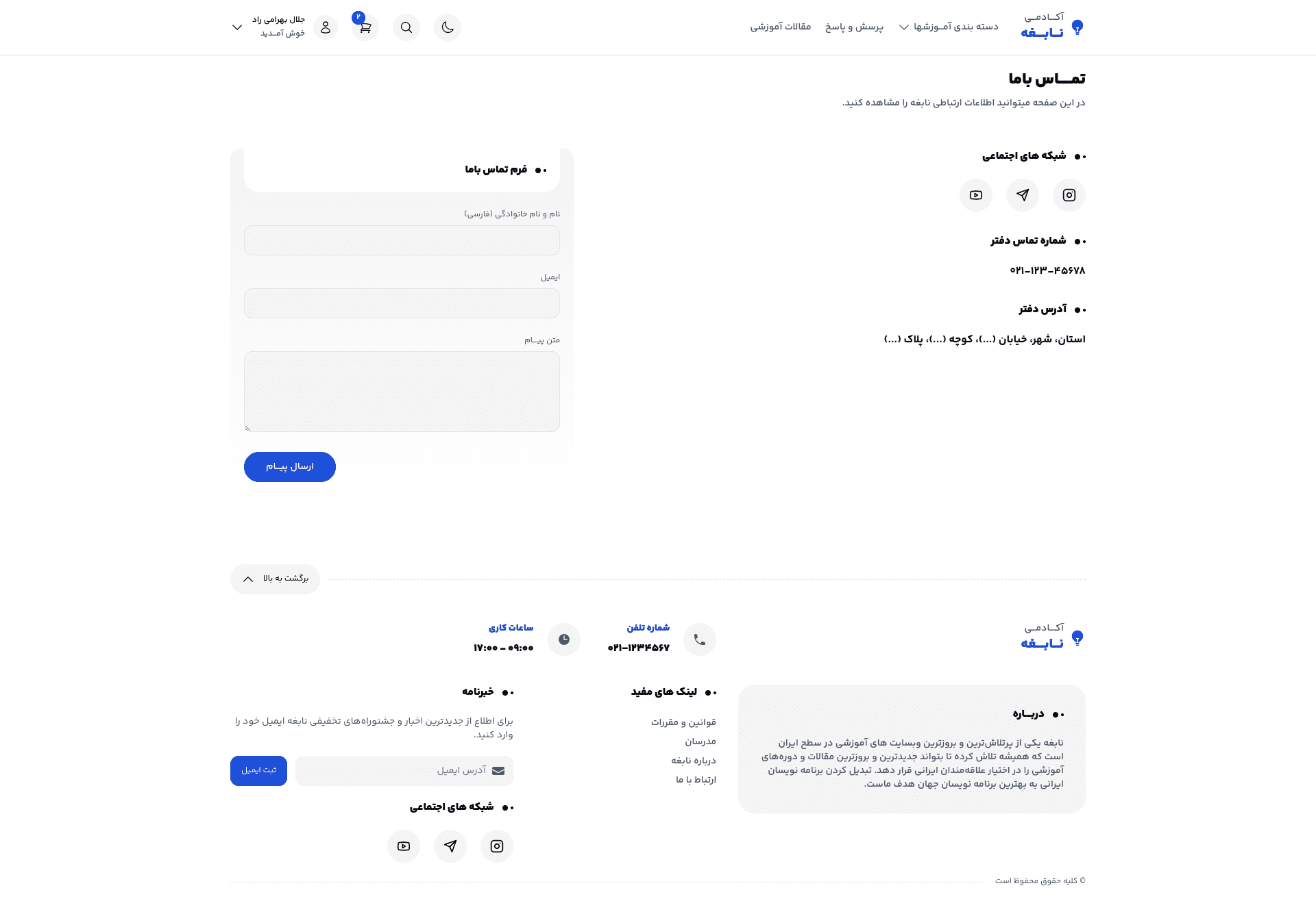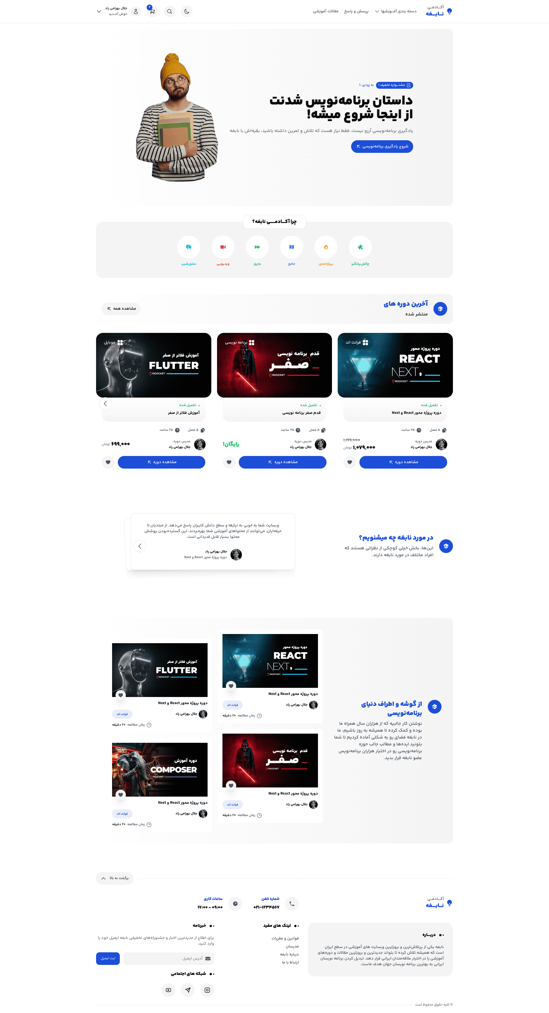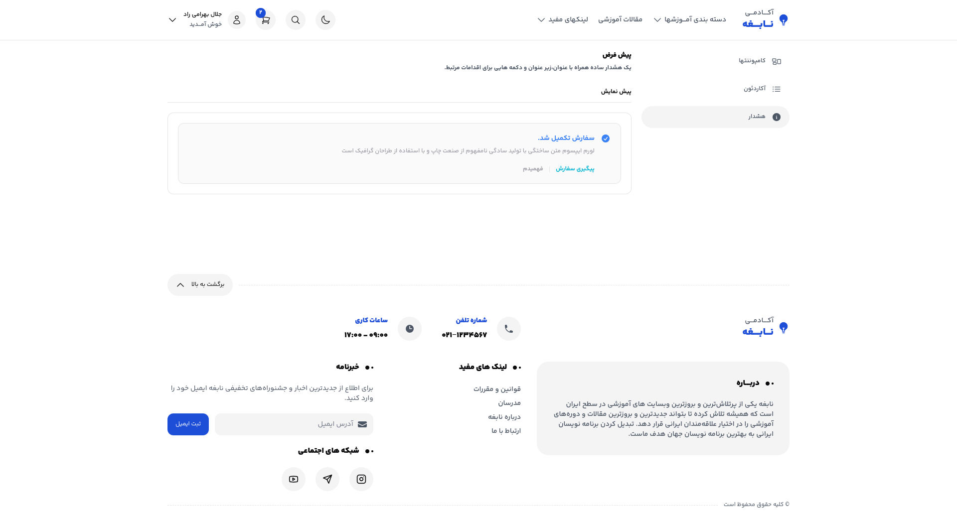 قالب آموزشی نابغه از قابلیت تغییر به حالت تم دارک/تاریک پشتیبانی میکند، که به کاربران امکان میدهد در محیط تاریک تجربه کاربری دوستانهتری داشته باشند.