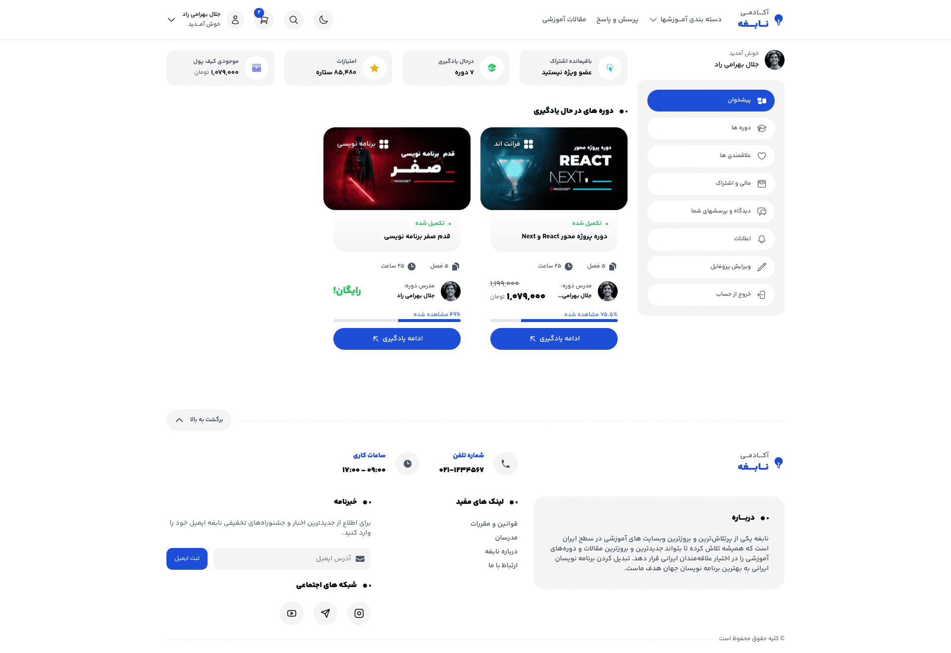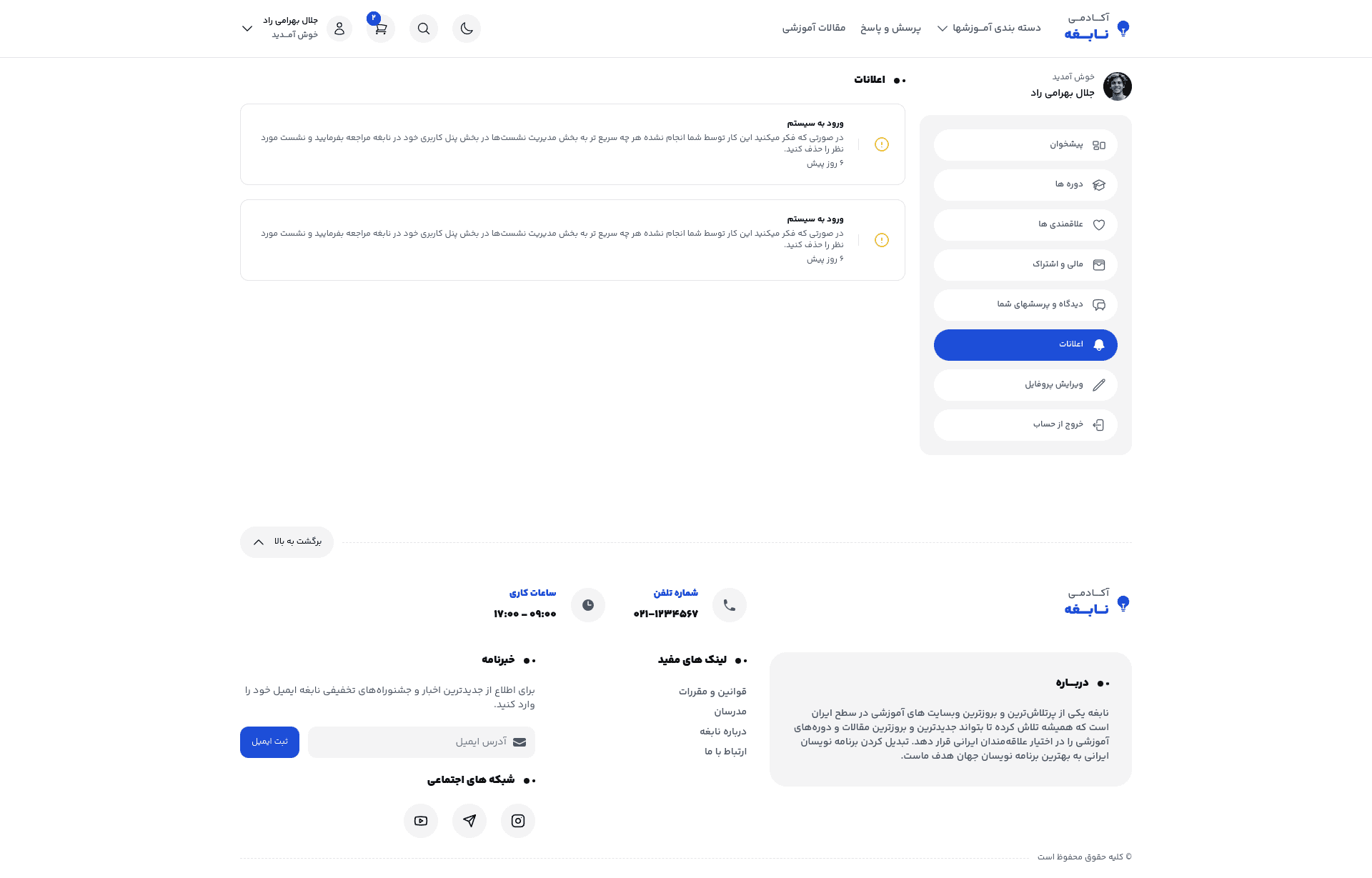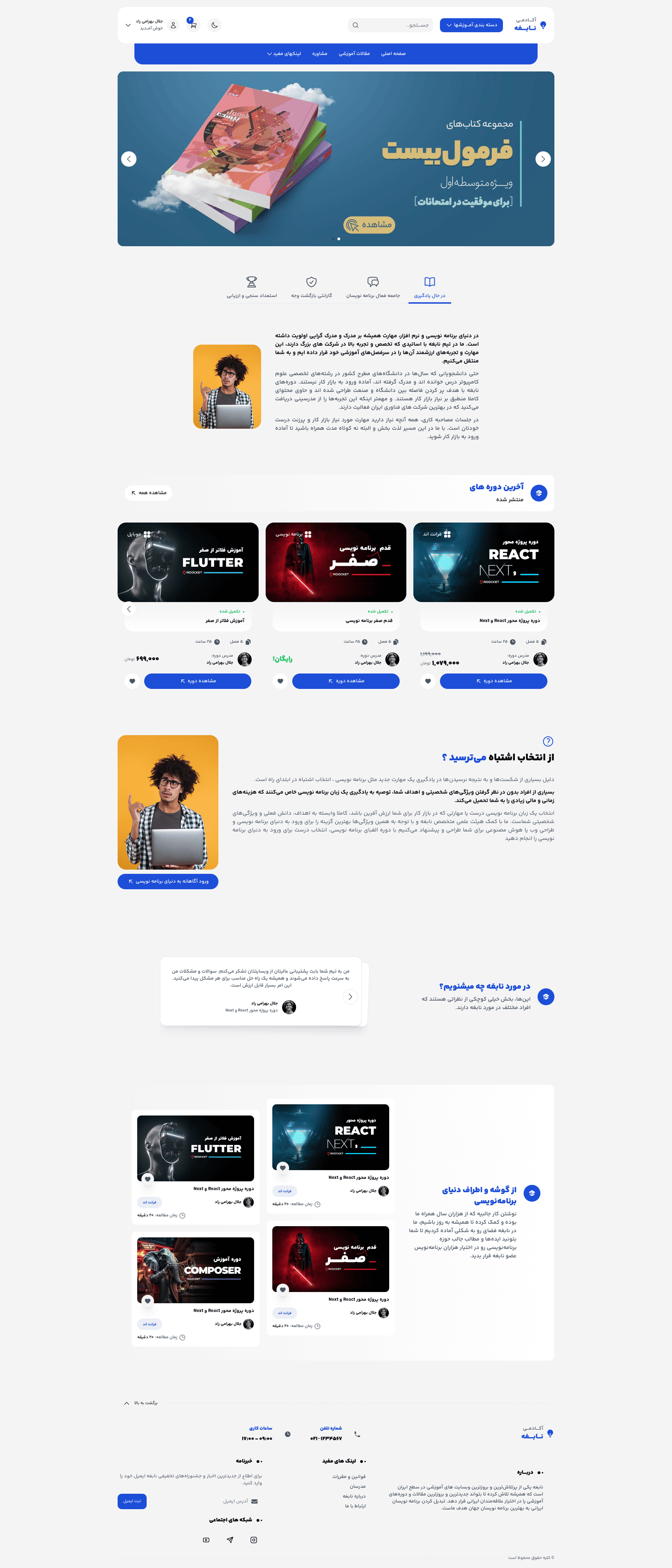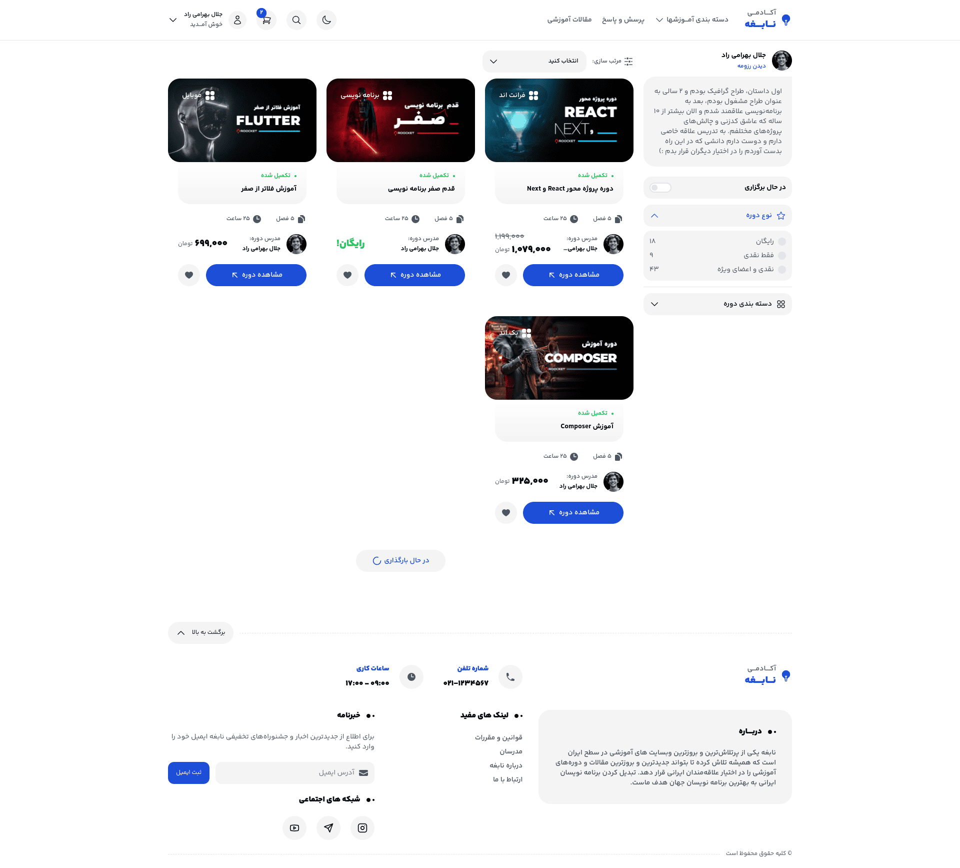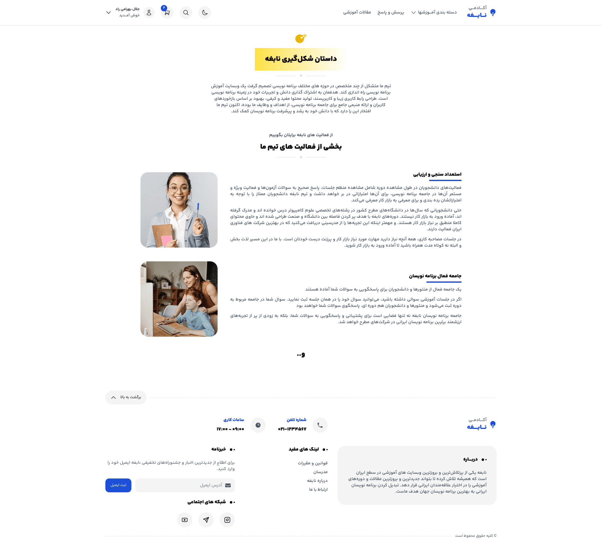 قالب آموزشی نابغه از قابلیت تغییر به حالت تم دارک/تاریک پشتیبانی میکند، که به کاربران امکان میدهد در محیط تاریک تجربه کاربری دوستانهتری داشته باشند.