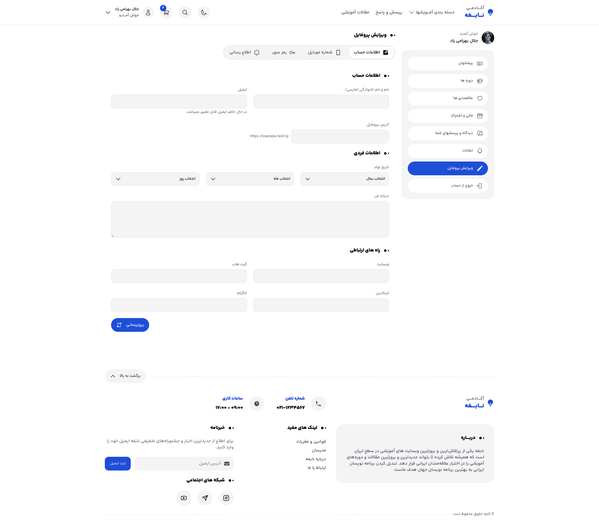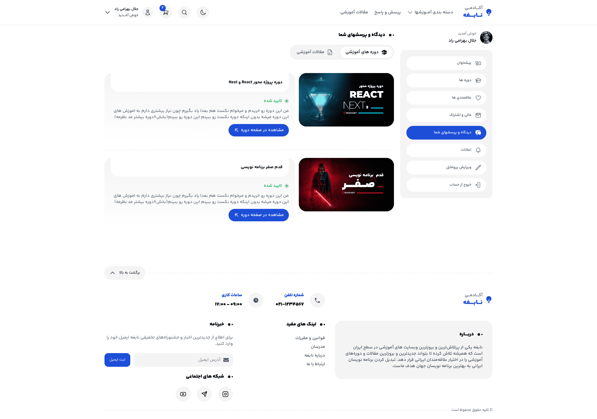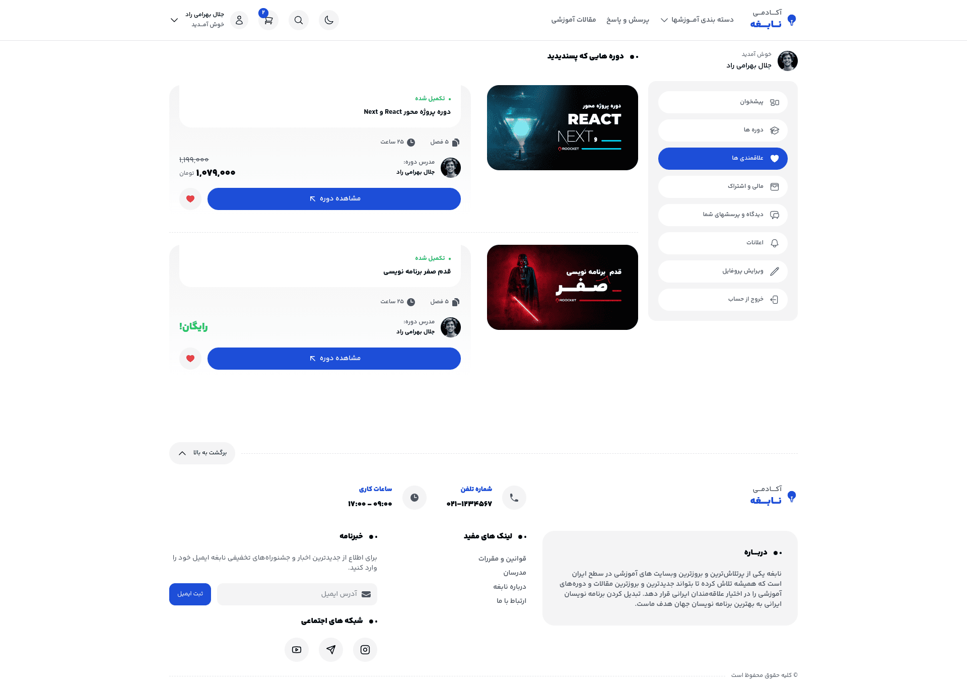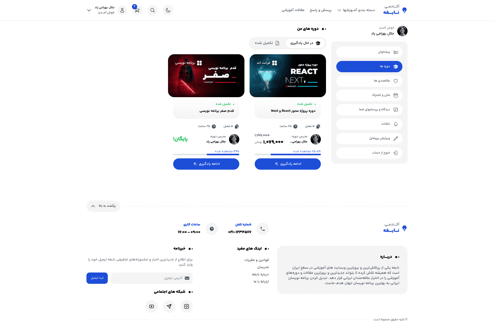 قالب آموزشی نابغه از قابلیت تغییر به حالت تم دارک/تاریک پشتیبانی میکند، که به کاربران امکان میدهد در محیط تاریک تجربه کاربری دوستانهتری داشته باشند.